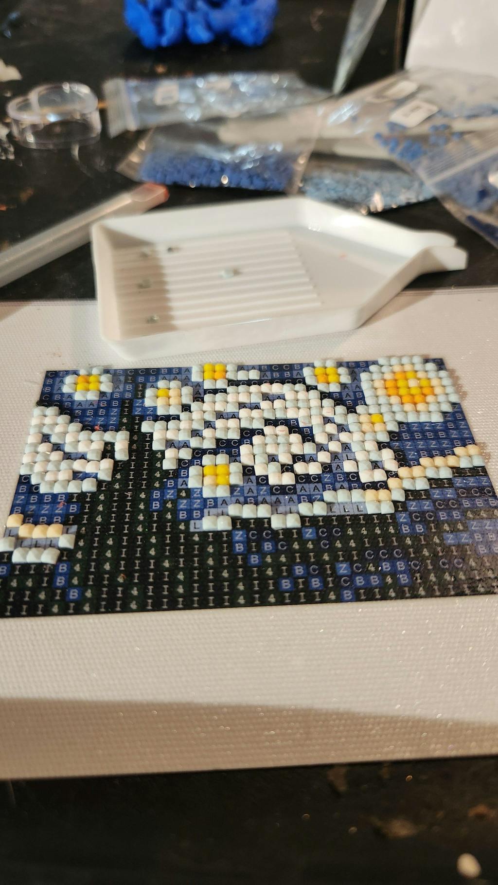 Choose a gem color and pour the gems into the white tray |