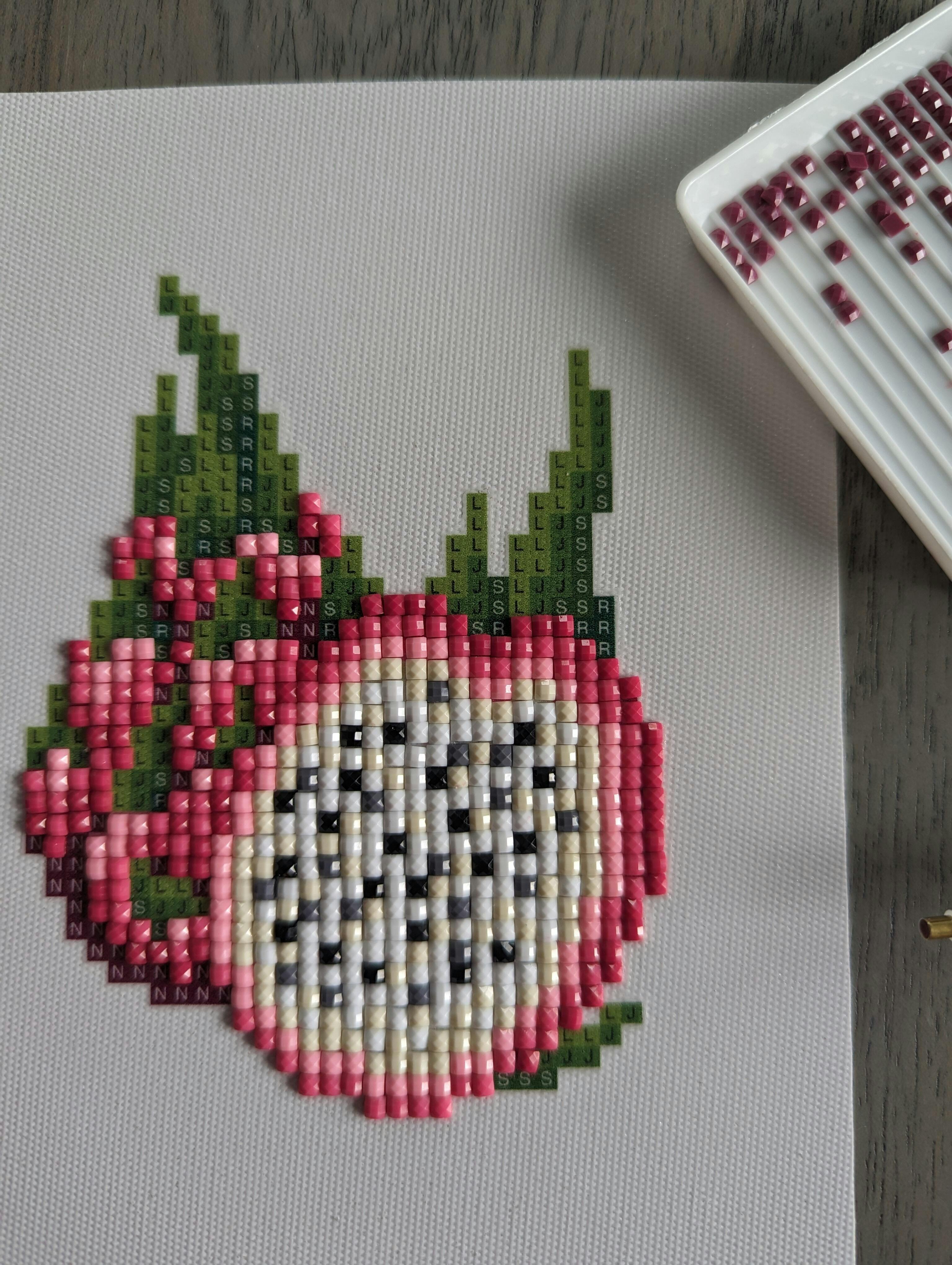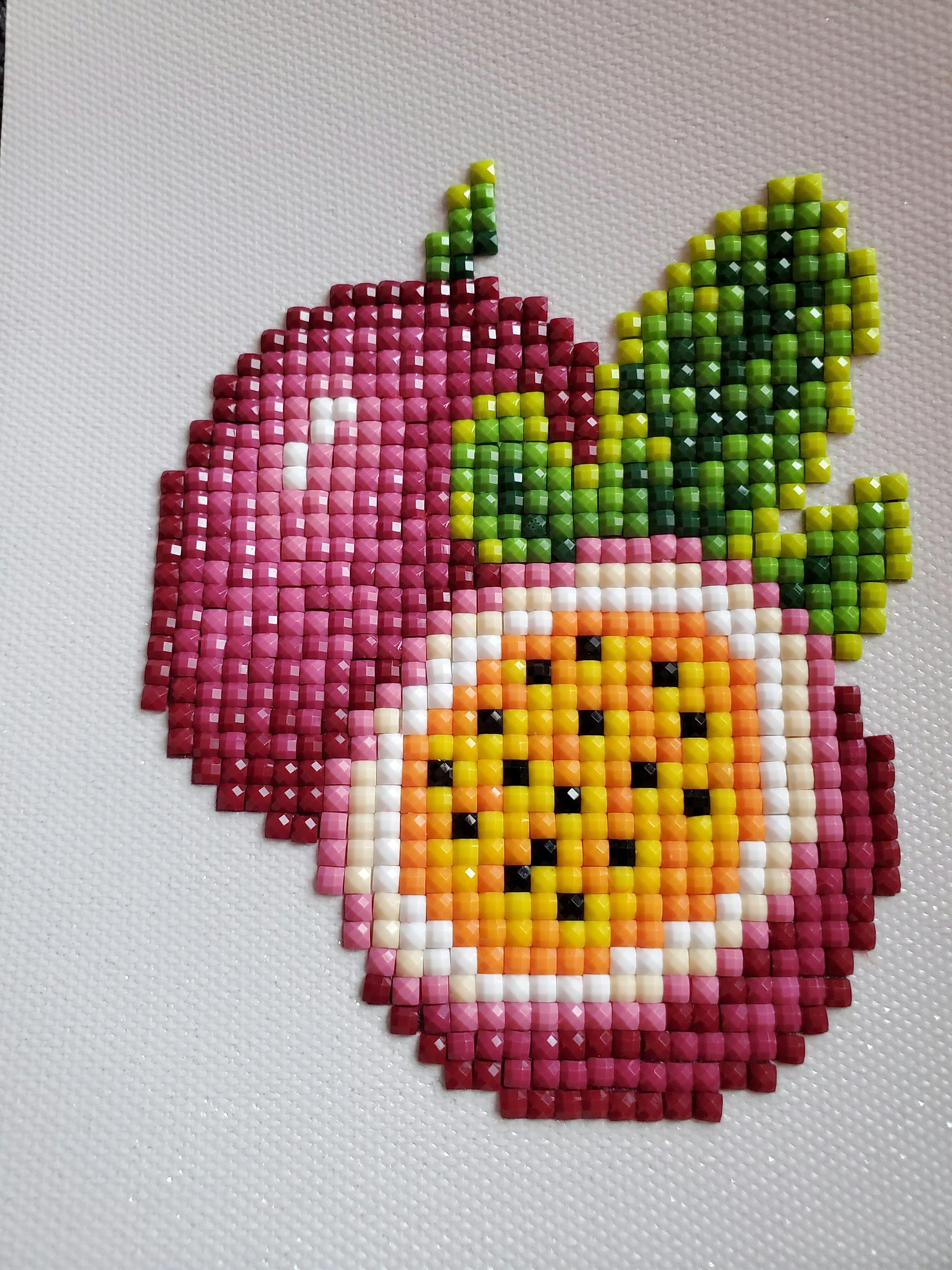This set includes 12 canvases, 8,974 gems in 35 colors and tools to complete the entire set