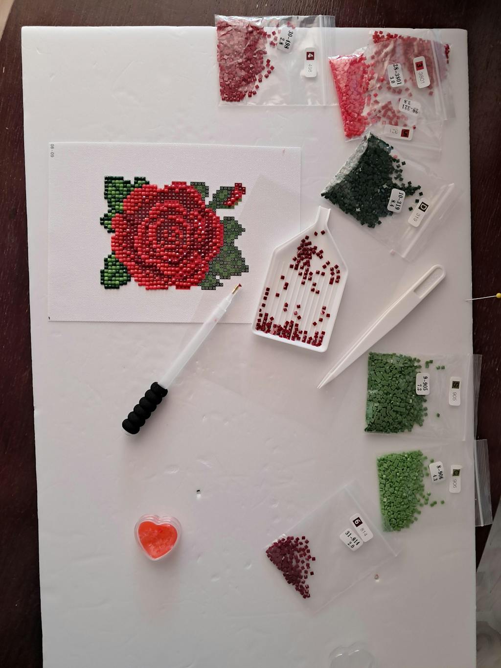 Choose a gem color and pour the gems into the white tray |
