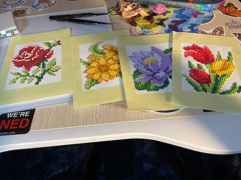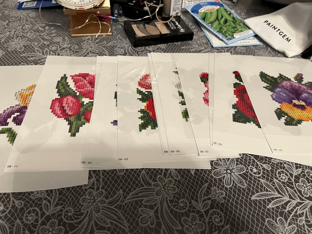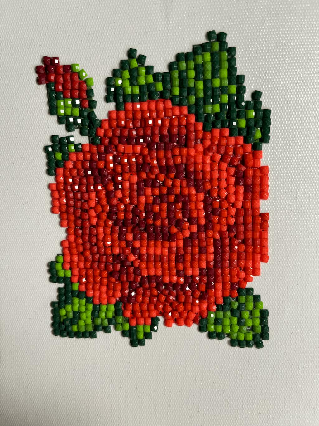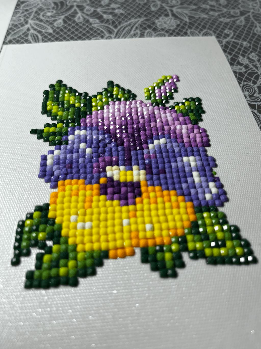 This set includes 12 canvases, 9,805 gems in 30 colors and tools to complete the entire set