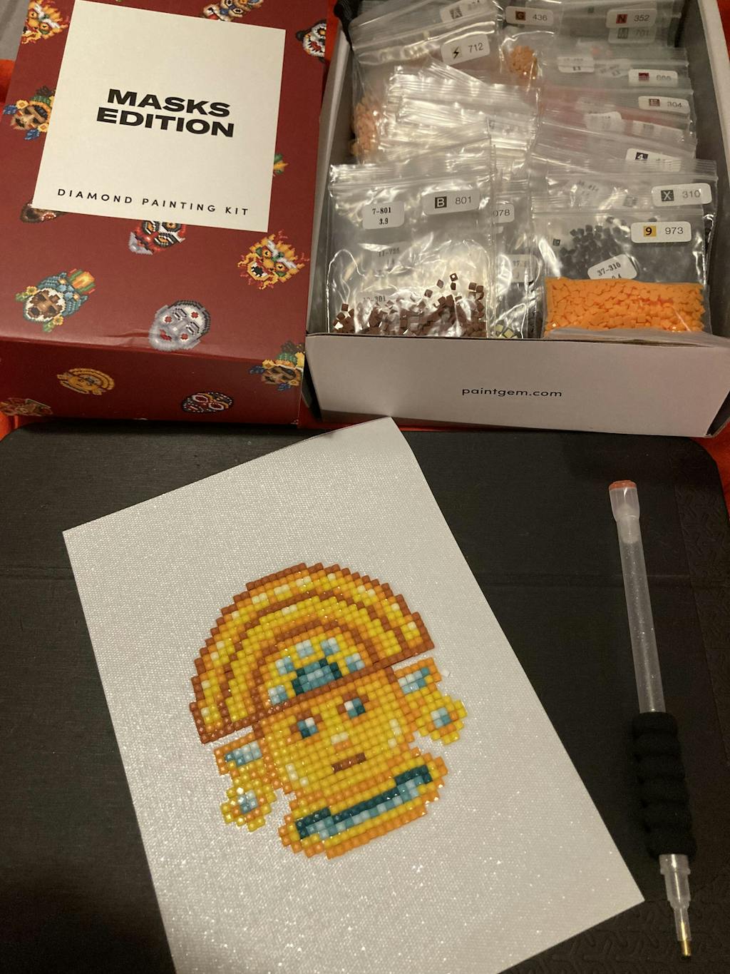This set includes 16 canvases, 14,413 gems in 37 colors and tools to complete the entire set
