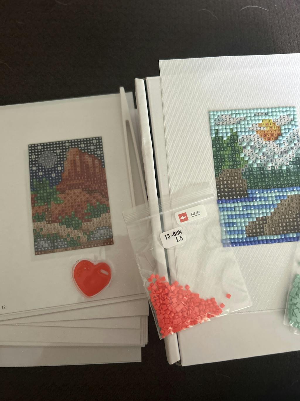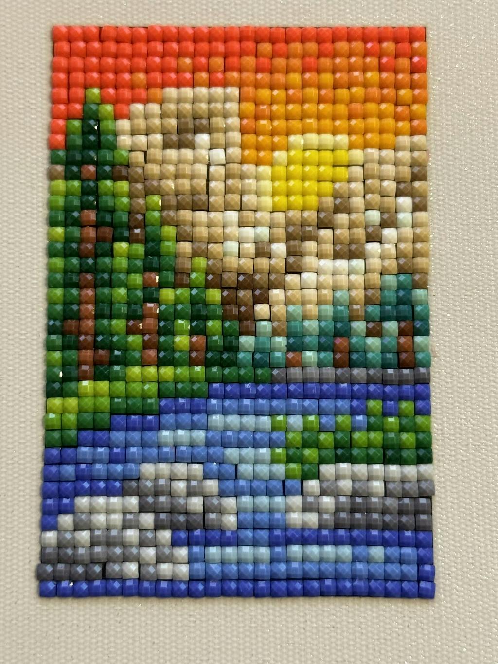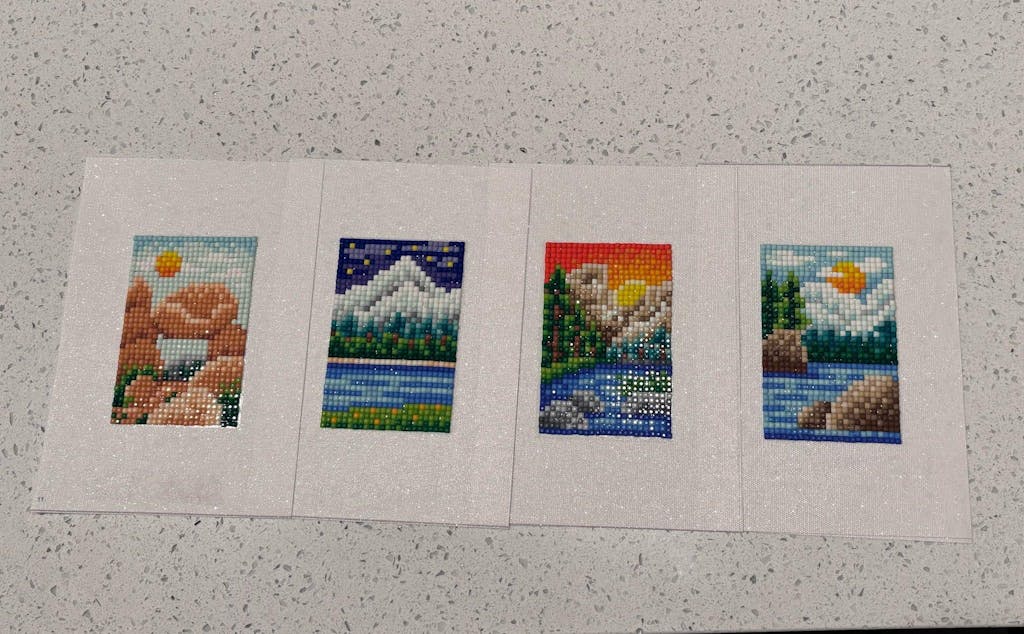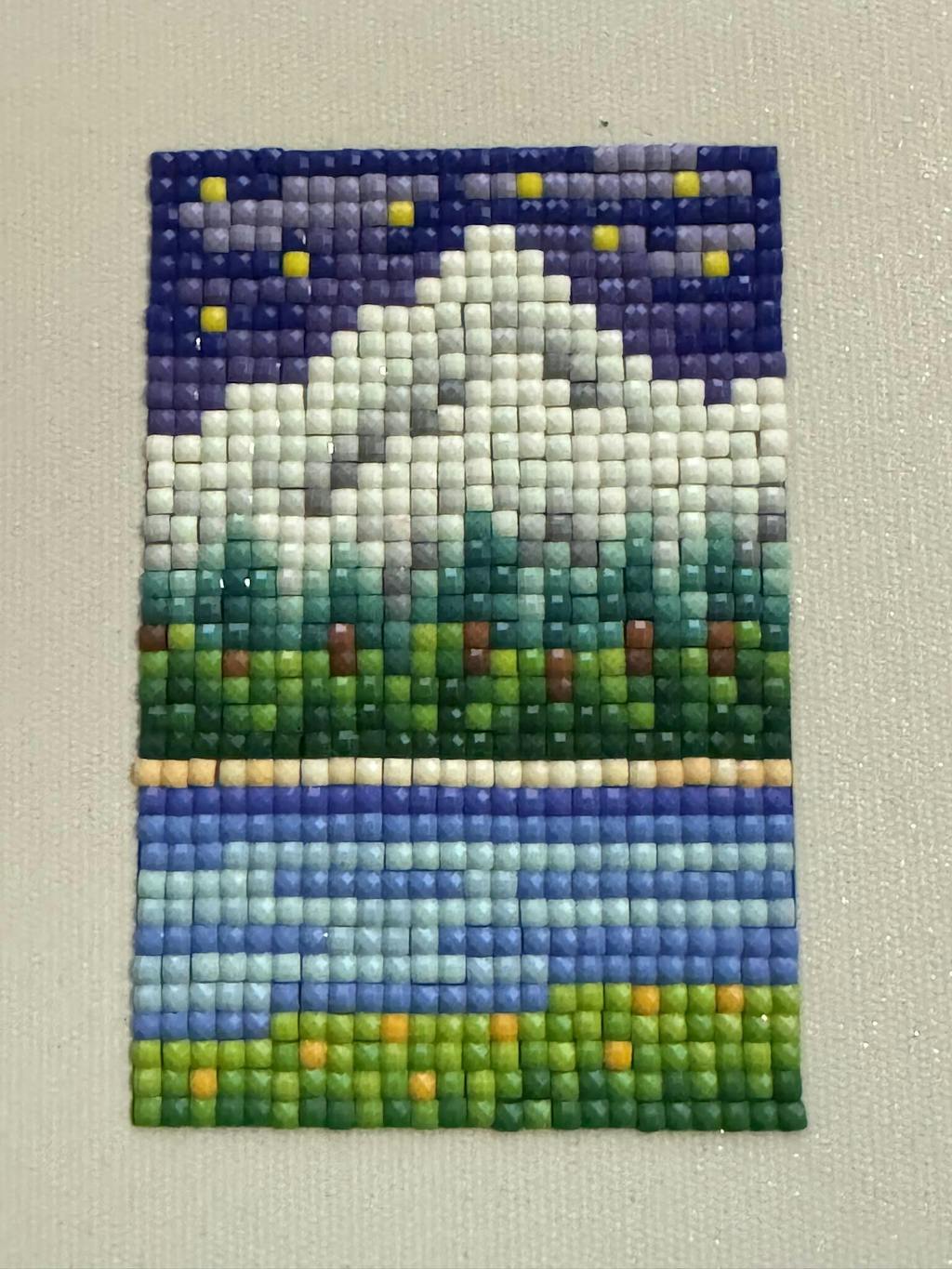 This set includes 12 canvases, 10,368 gems in 45 colors and tools to complete the entire set