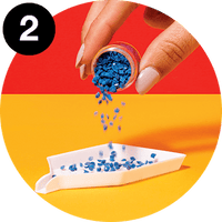 Choose a gem color and pour the gems into the white tray |